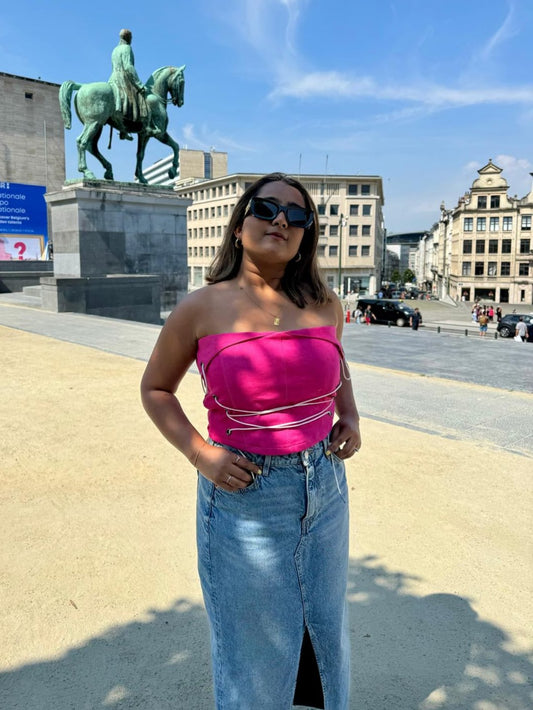 LACE UP TOP - RANI PINK