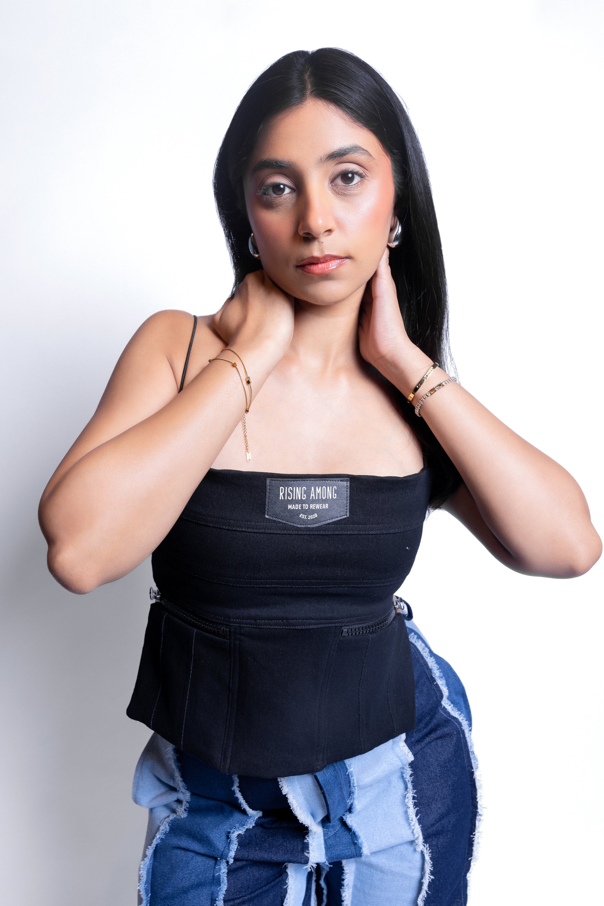 Take over the streets with the Black Denim Taxi Top, your ultimate NYC-inspired corset. Designed for bold souls who move at the city's pace, this high-stretch denim top hugs your silhouette for unmatched comfort and flexibility. Whether it’s a night out or a concert, this statement piece guarantees all eyes on you.